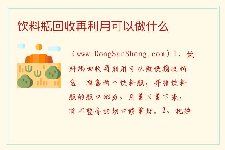 1、饮料瓶回收再利用可以做便携收纳盒。准备两个饮料瓶,并将饮料瓶的瓶口部分,用剪刀剪下来,将不整齐的切口修剪好。