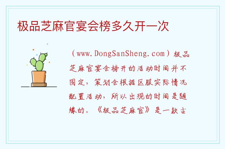 极品芝麻官宴会榜开的活动时间并不固定,策划会根据区服实际情况配置活动,所以出现的时间是随缘的。《极品芝麻官》是一款古代官场题材策略经营手游。从九品芝麻官逐渐成为当朝一品大员。原创宫廷官斗手游《极品芝麻官》6月20日全平台首发。游戏以当官第一视觉生动呈现,有家族结盟、联盟争霸、培养门客、玩家PK、多人社交等玩法。告别枯燥乏味的刷怪升级,抛弃模式单一的经营玩法,来一场尔虞我诈的官场争斗。引人入胜的关卡剧情,斗智斗勇的玩家对抗,岂不快哉。
