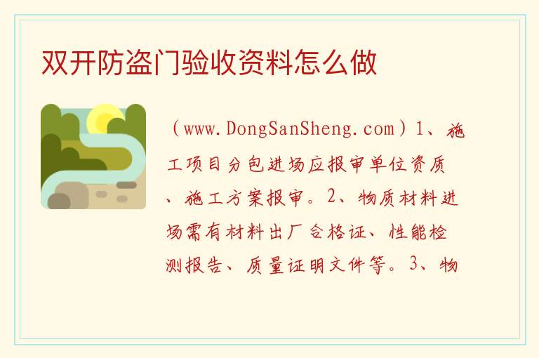 2、物质材料进场需有材料出厂合格证、性能检测报告、质量证明文件等。