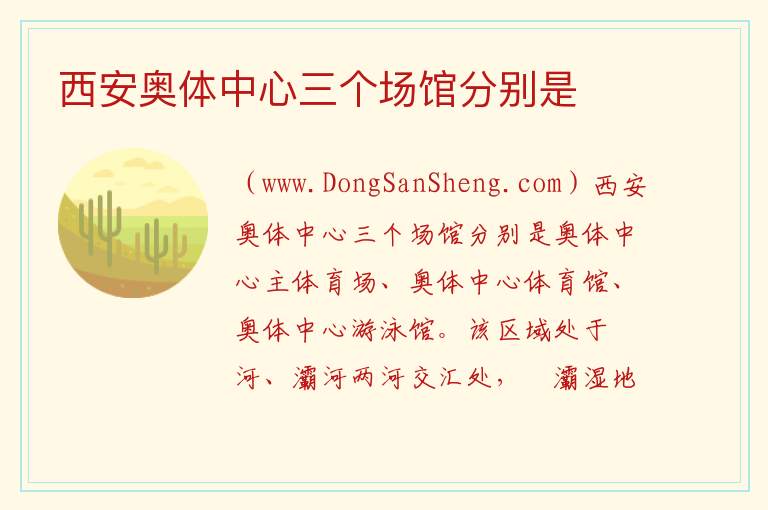 西安奥体中心三个场馆分别是奥体中心主体育场、奥体中心体育馆、奥体中心游泳馆。该区域处于浐河、灞河两河交汇处,浐灞湿地公园,生态环境优美。周边区域地域开阔、地势平坦,是西安国际化大都市建设的核心区和引领区,开发和升值潜力巨大,为全运会结束后体育场馆和设施的市场化开发运营创造了条件。