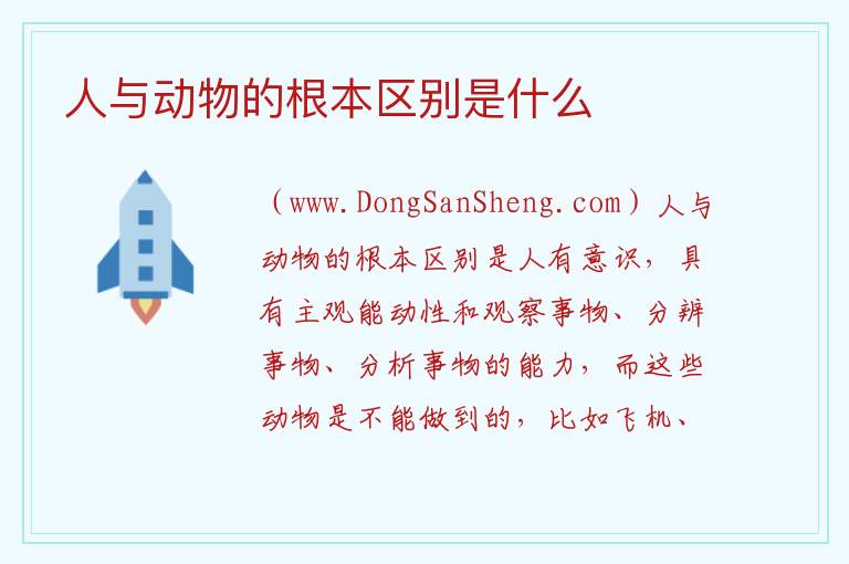 人与动物的根本区别是人有意识,具有主观能动性和观察事物、分辨事物、分析事物的能力,而这些动物是不能做到的,比如飞机、汽车、轮船之类的也只有人类才能造出来,动物是无法制造出来的。