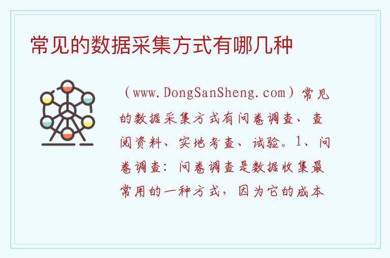 常见的数据采集方式有问卷调查、查阅资料、实地考查、试验。
