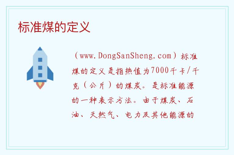 标准煤的定义是指热值为7000千卡/千克(公斤)的煤炭。是标准能源的一种表示方法。由于煤炭、石油、天然气、电力及其他能源的发热量不同,为了使其能够进行比较,以便计算、考察国民经济各部门的能源消费量及其利用效果,通常采用标准煤这一标准折算单位。
