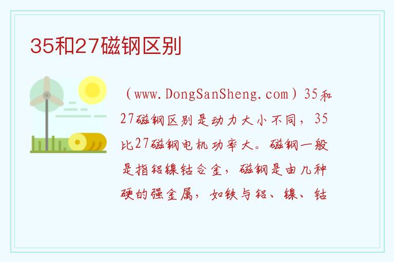 35和27磁钢区别是动力大小不同,35比27磁钢电机功率大。磁钢一般是指铝镍钴合金,磁钢是由几种硬的强金属,如铁与铝、镍、钴等合成。有时是铜、铌、钽合成,用来制作超硬度永磁合金。其金属成分的构成不同、磁性能不同,从而用途也不同。主要用于各种传感器、仪表、电子、机电、医疗、教学、汽车、航空、军事技术等领域。铝镍钴磁钢是最古老的一种磁钢,被人们称为天然磁体,使其至今仍是最重要的磁钢之一。...