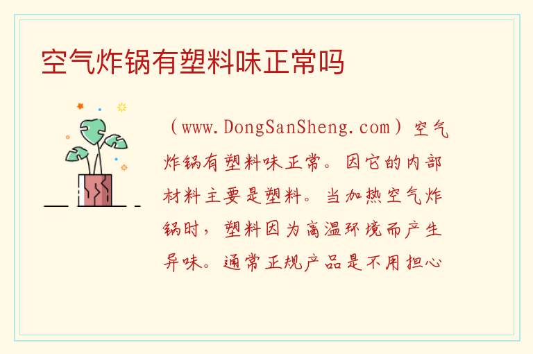 空气炸锅有塑料味正常。因它的内部材料主要是塑料。当加热空气炸锅时,塑料因为高温环境而产生异味。通常正规产品是不用担心会有质量问题。空气炸锅,是一种可以用空气来进行“油炸的机器,主要是利用空气替代原本煎锅里的热油,让食物变熟;同时热空气还吹走了食物表层的水分,使食材达到近似油炸的效果。...