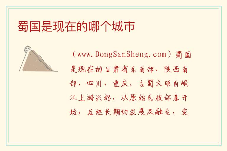 蜀国是现在的甘肃省东南部、陕西南部、四川、重庆。古蜀文明自岷江上游兴起,从原始氏族部落开始,后经长期的发展及融合,变为蜀人,并转型成封建制国家。蜀国拥有发达的青铜冶炼技术、成熟的黄金加工技术,同时也是一个神巫色彩浓厚的国家。蜀地文明分为几个时期:蜀山氏、蚕丛氏、柏灌氏、鱼凫氏、开明氏。...