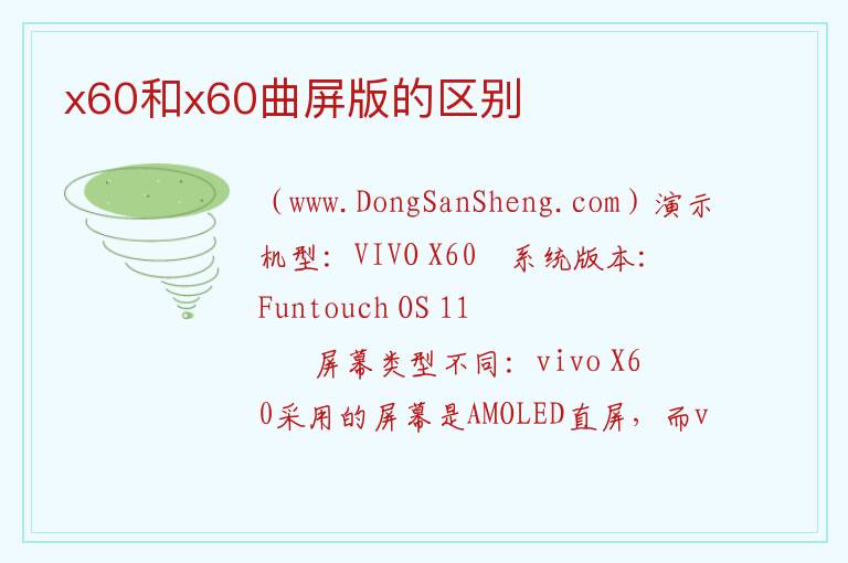 屏幕类型不同:vivo X60采用的屏幕是AMOLED直屏,而vivo X60曲屏版采用的屏幕是AMOLED曲屏。